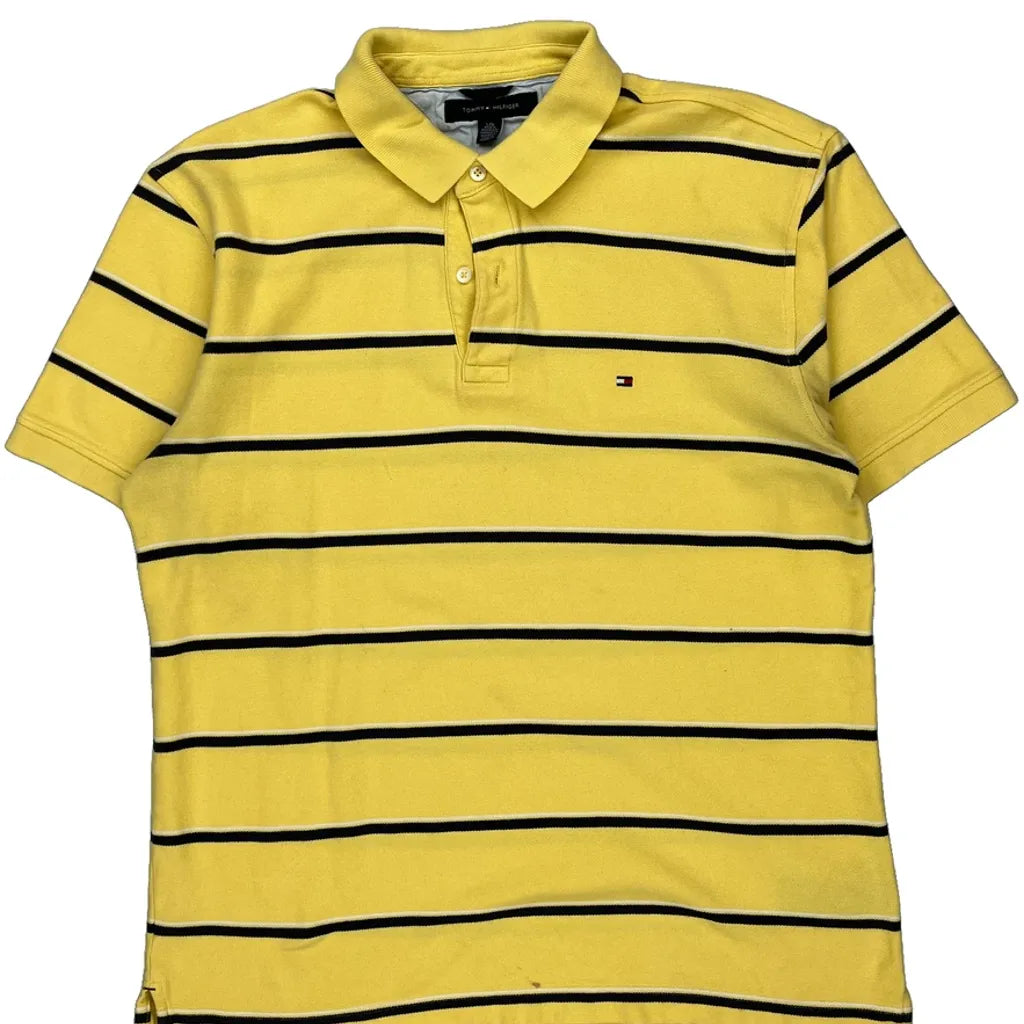 Tommy Hilfiger Striped Polo Shirt - Large Yellow Cotton