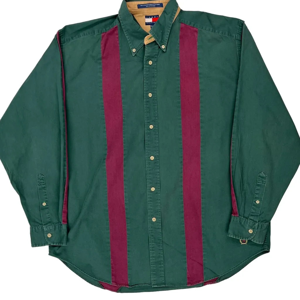 Tommy Hilfiger Striped Shirt - Medium Green Cotton