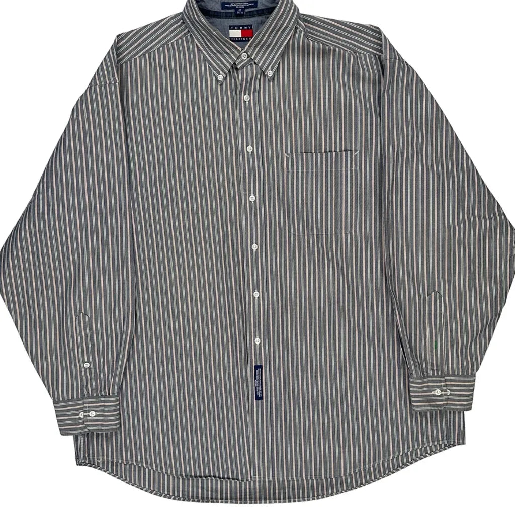 Tommy Hilfiger Striped Shirt - 2XL Grey Cotton