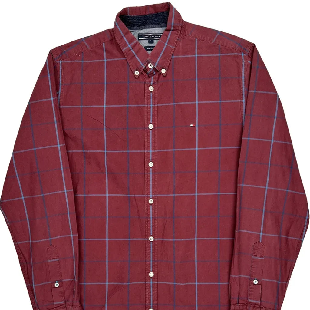 Tommy Hilfiger Checked Shirt - Large Red Cotton