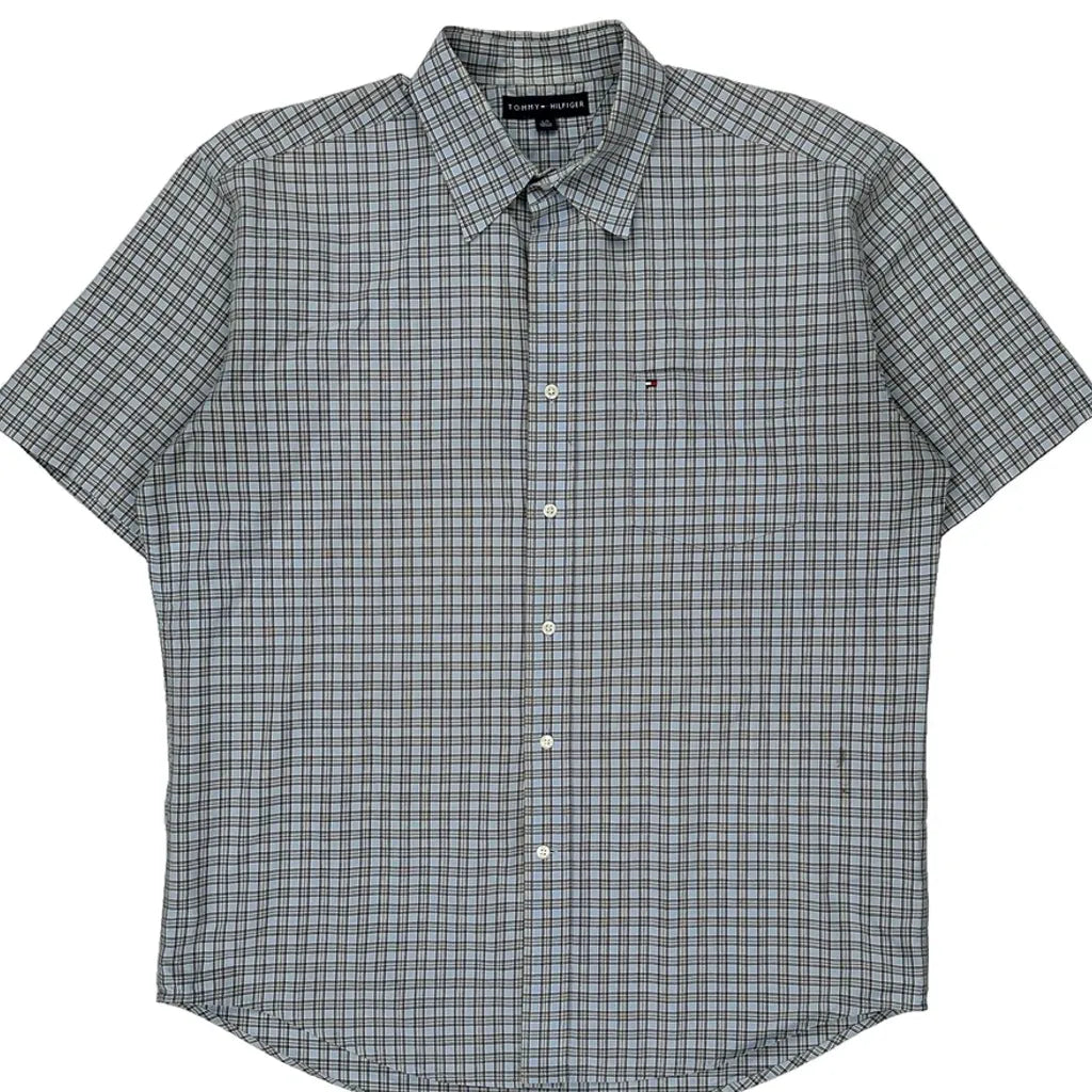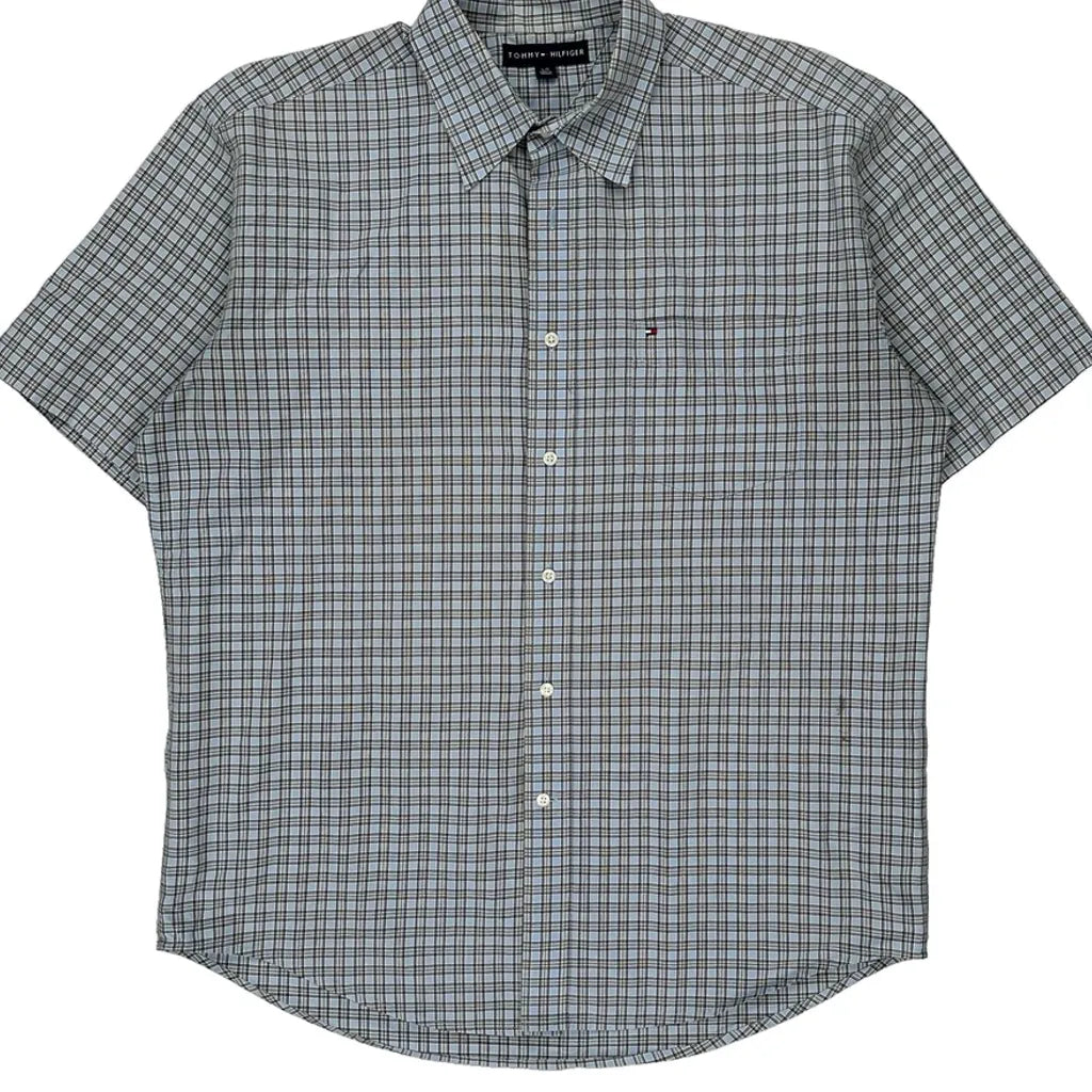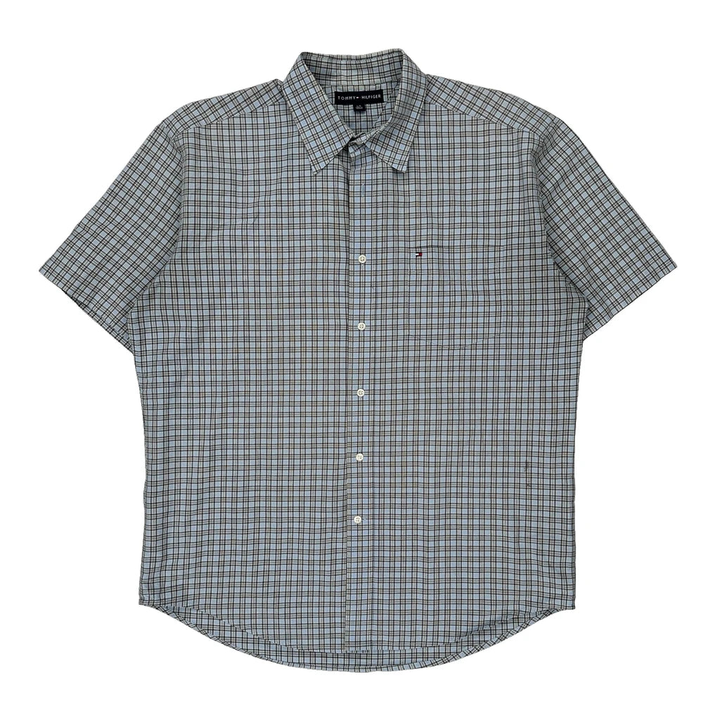 Tommy Hilfiger Checked Short Sleeve Shirt - Large Blue Cotton