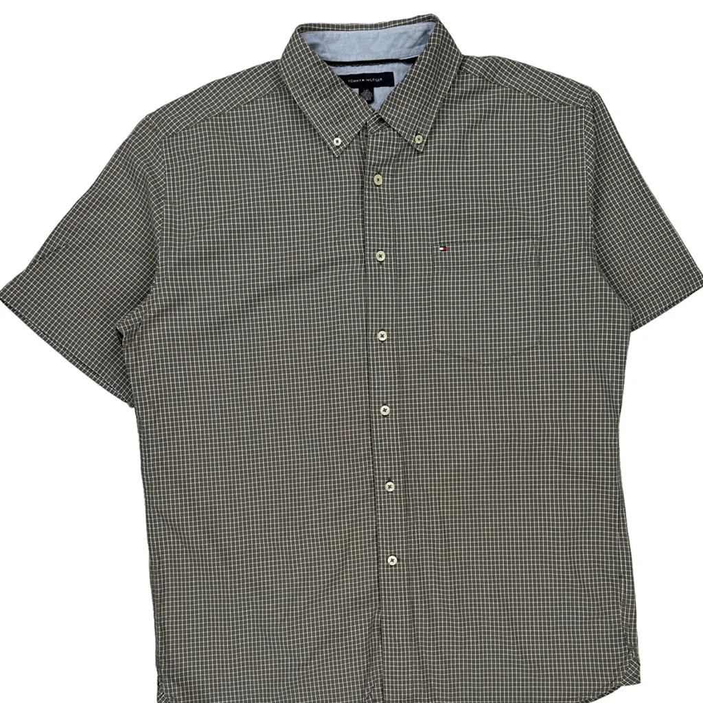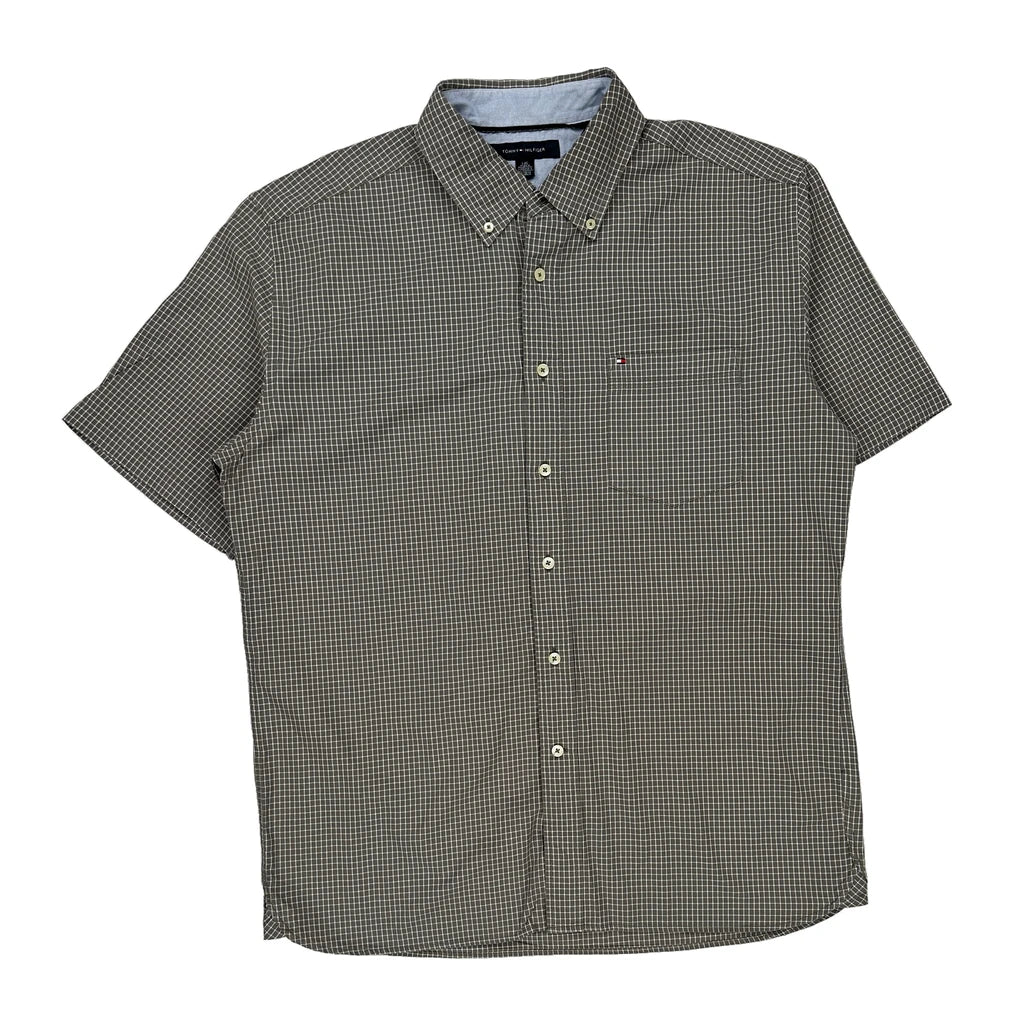 Tommy Hilfiger Checked Short Sleeve Shirt - Large Grey Cotton