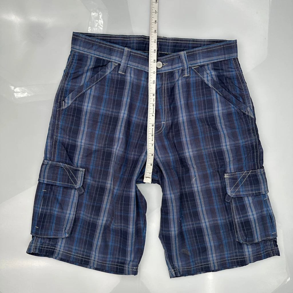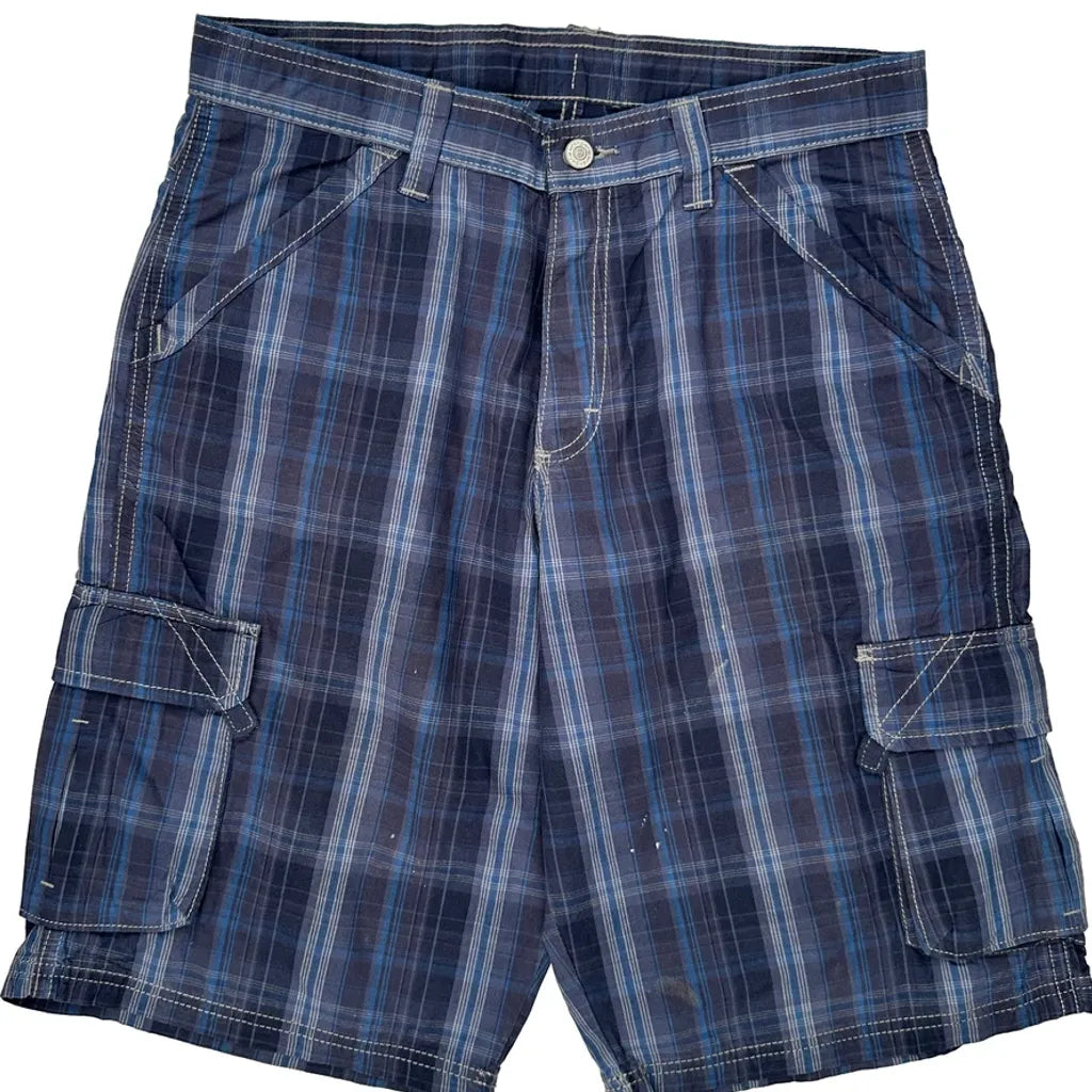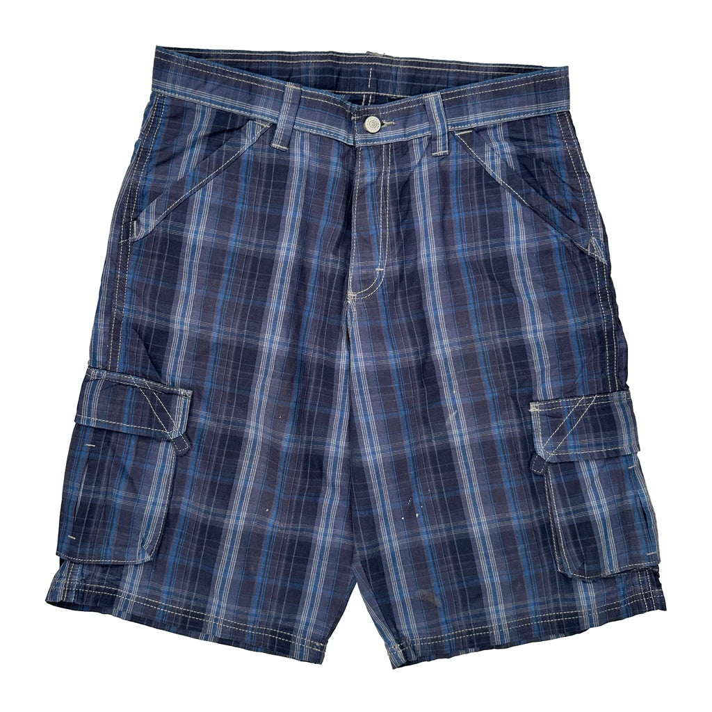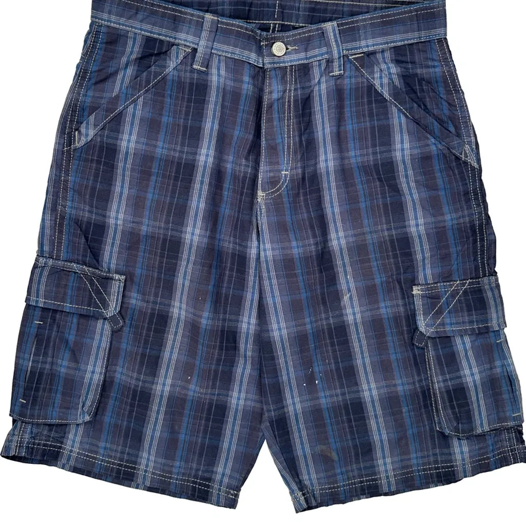Unbranded Checked Cargo Shorts - 32W 10L Blue Cotton