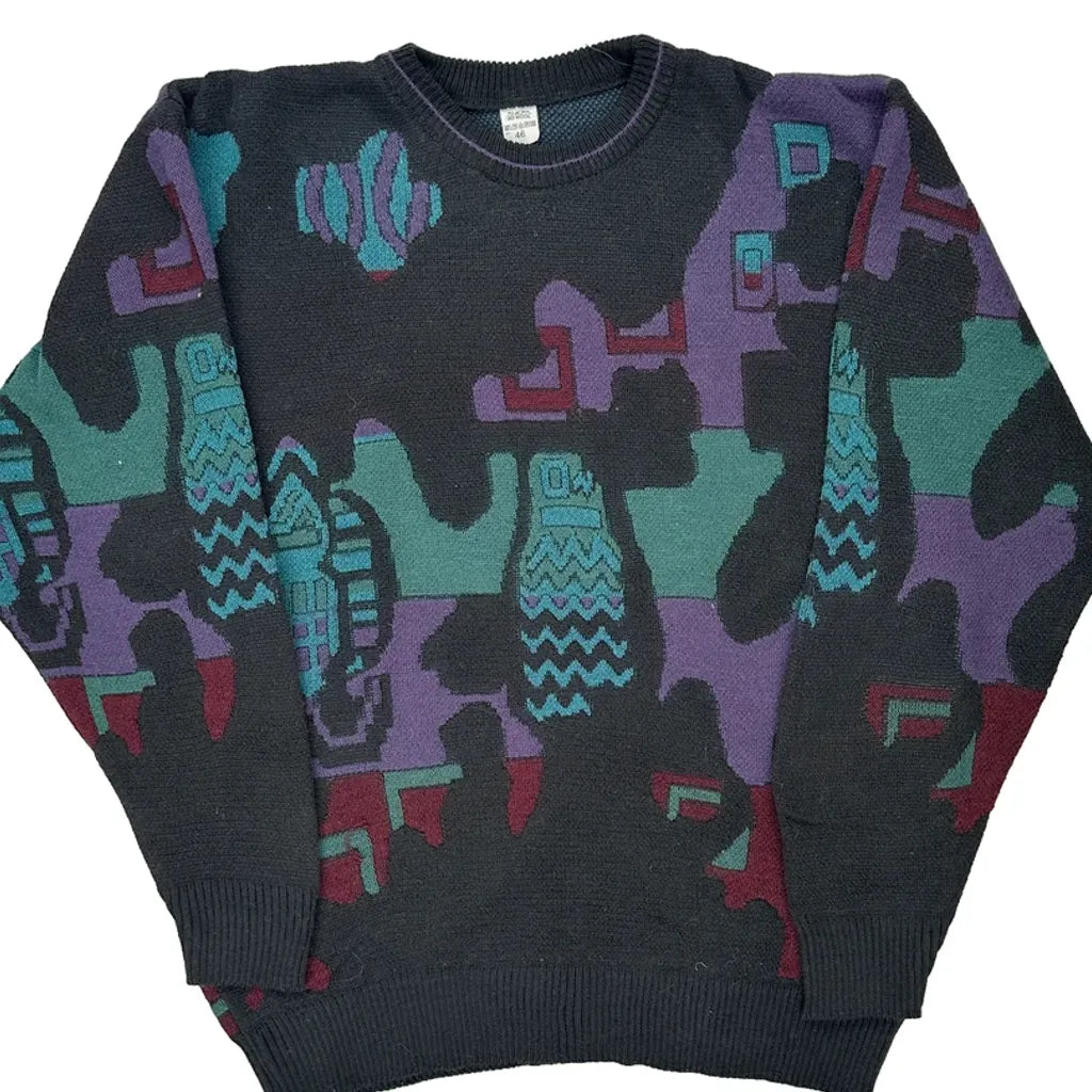 Vintage Jumper With Abstract Pattern In Multicolour