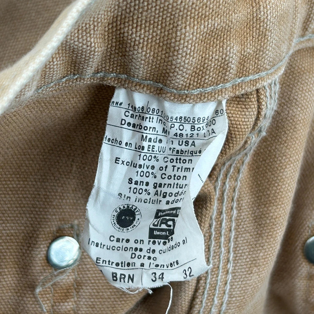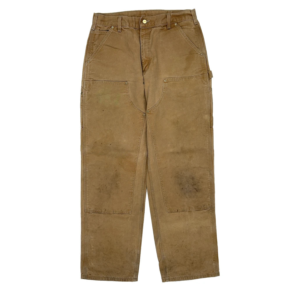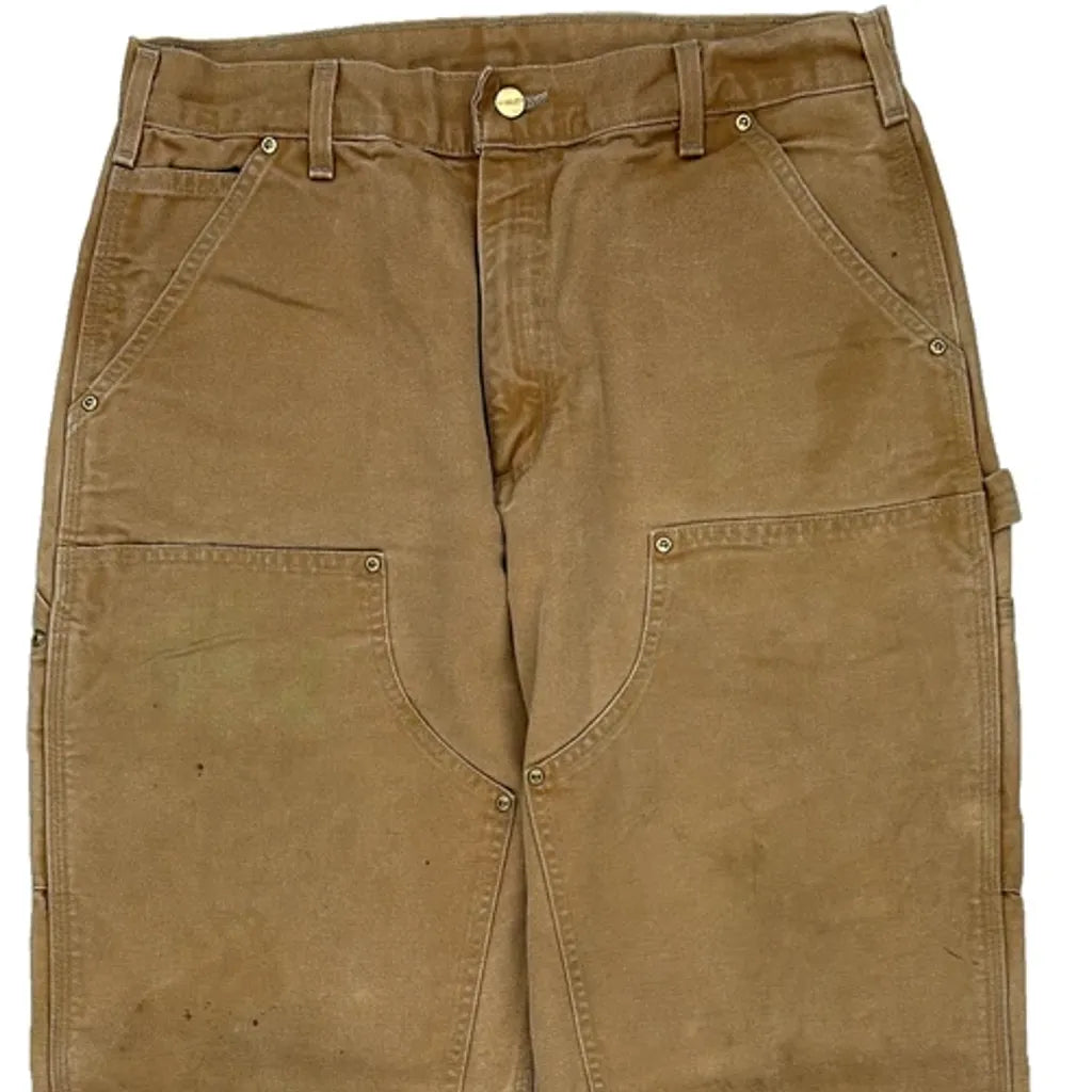 Union Made Carhartt Double Knee Carpenter Trousers - 32W 32L Brown Cotton