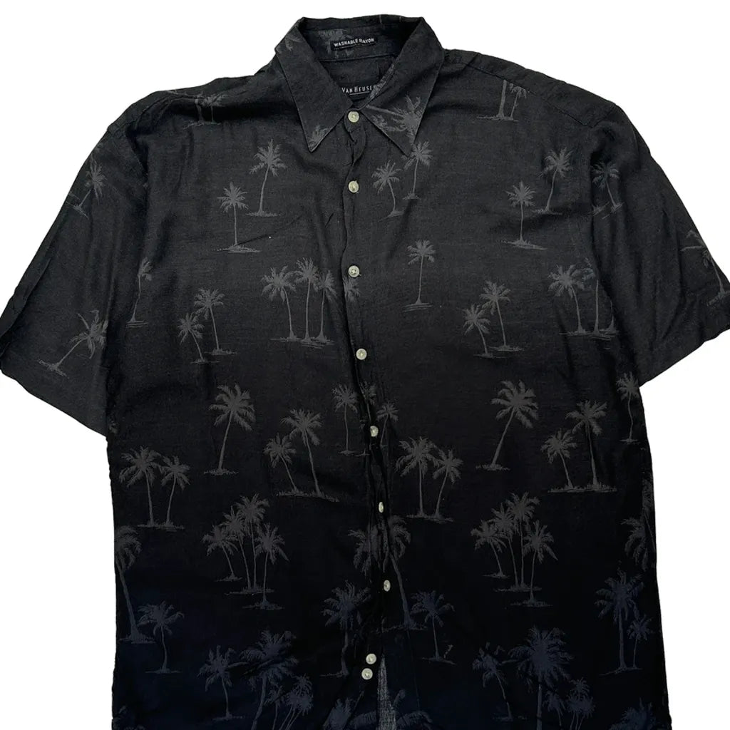 Van Heusen Hawaiian Shirt - Large Black Viscose