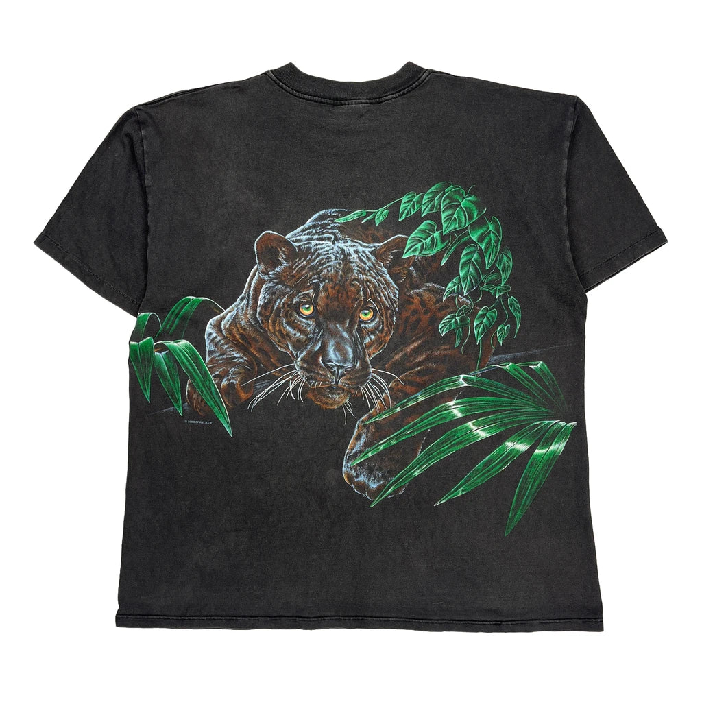 Black T-Shirt With A Graphic Of A Tiger And Green Leaves
