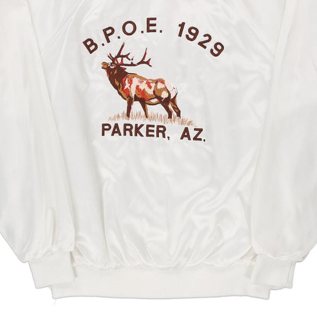 1980's Made in USA Parker, Arizona Auburn Graphic Varsity Jacket - XL White Polyester Blend