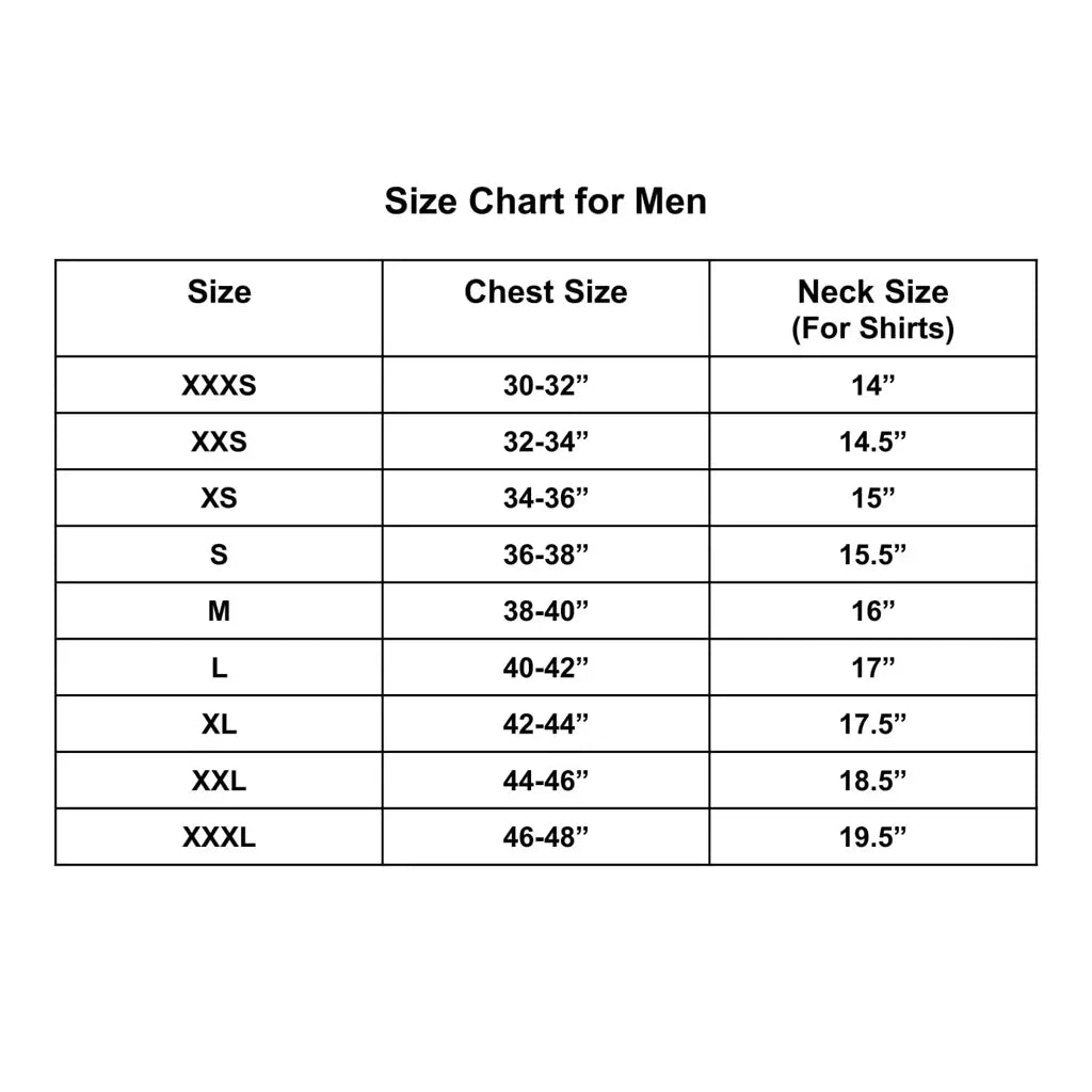 Mens Sizing Chart
