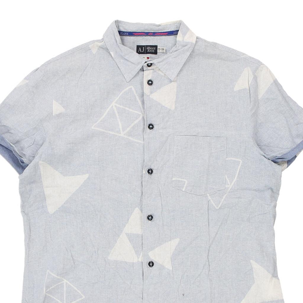 Armani Jeans Short Sleeve Shirt - 2XL Blue Linen Blend