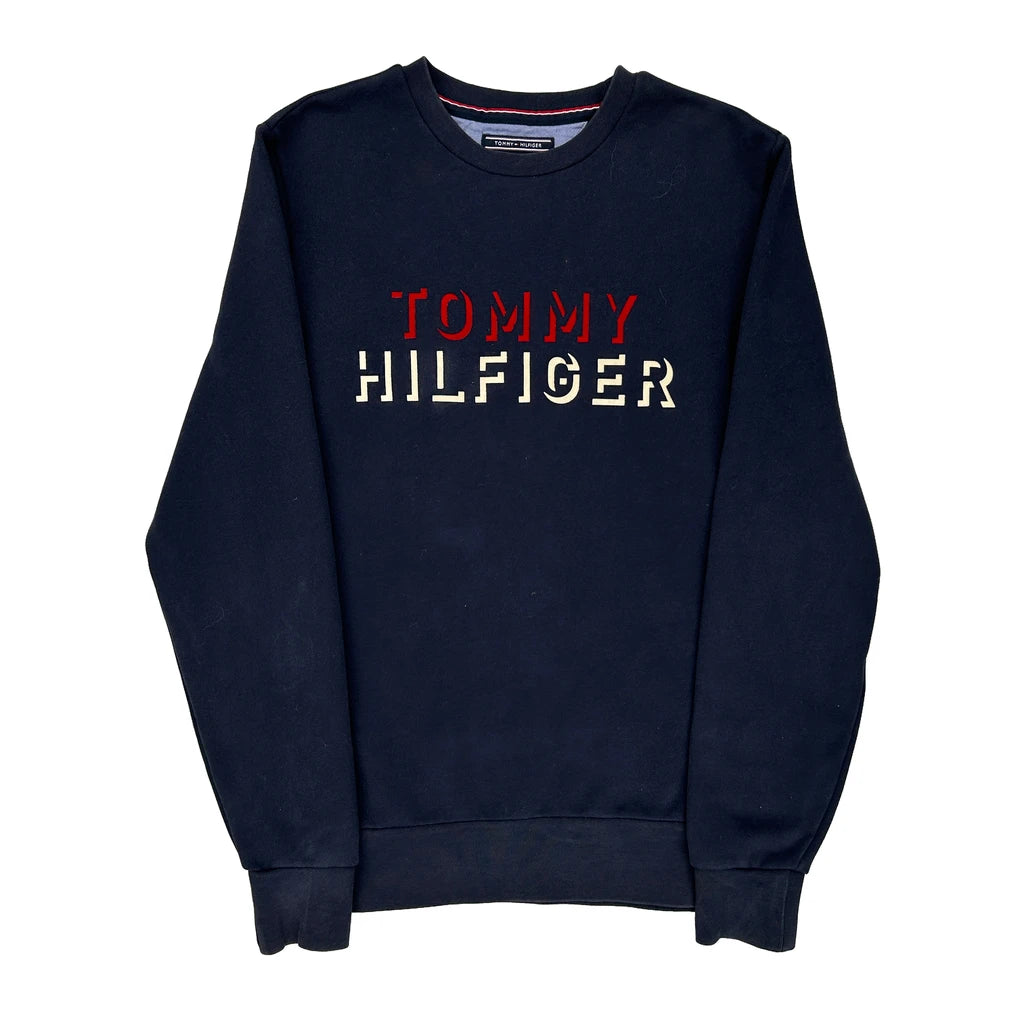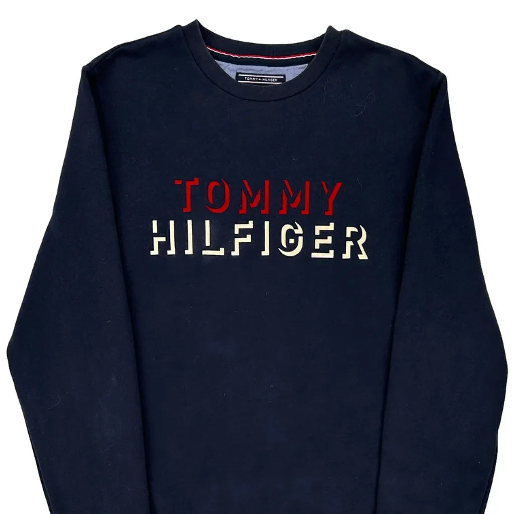 Vintage Fit Tommy Hilfiger Spellout Sweatshirt - Medium Navy Cotton