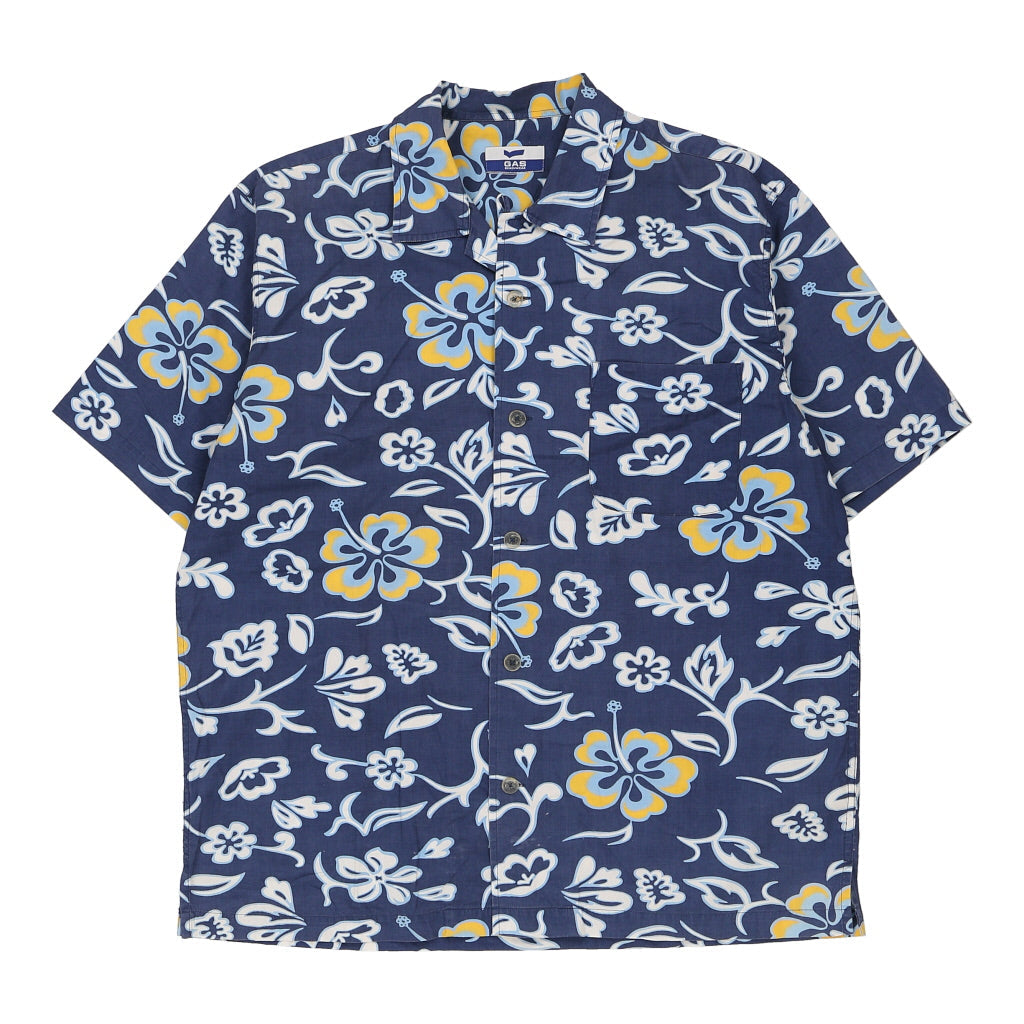Gas Floral Hawaiian Shirt - XL Blue Cotton