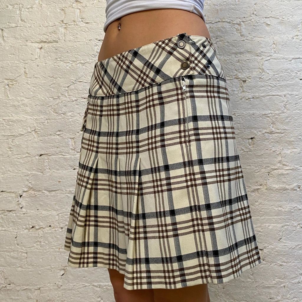 Giorgia Netti Checked Mini Skirt - 29W UK 10 Cream Polyester Blend