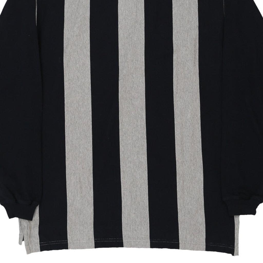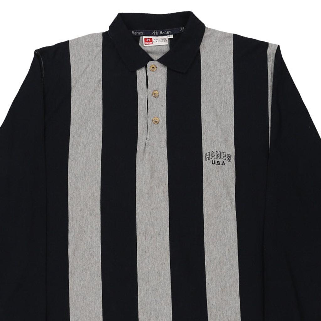 Hanes Striped Long Sleeve Polo Shirt - Large Black Cotton
