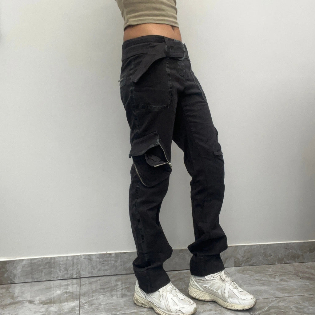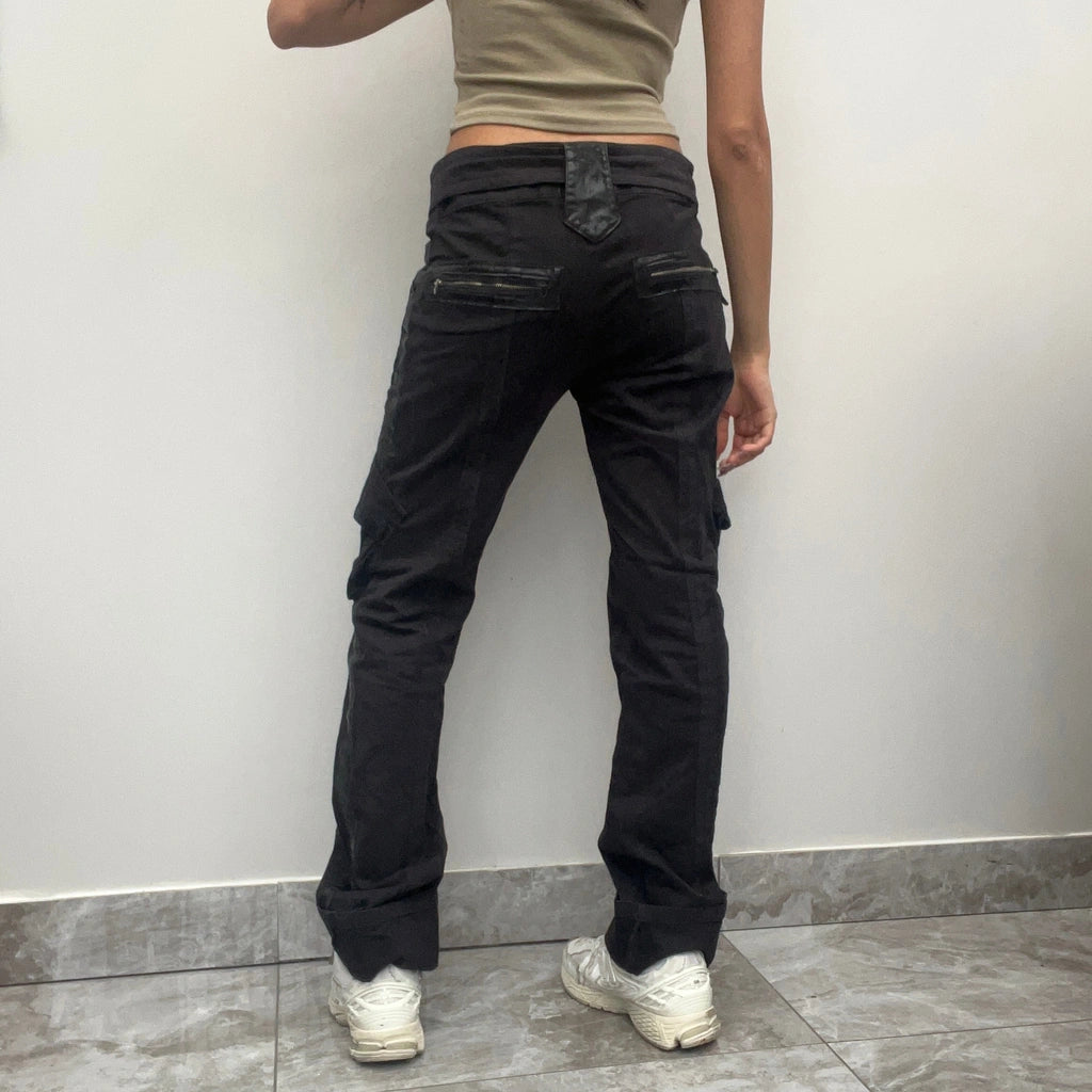 Vintage Lazzerini Tiziana black cargo trousers, fit a UK size 8 - low waisted with a 30" waist.