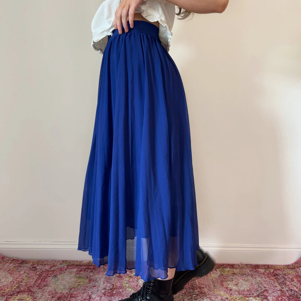 Louche Midi Skirt - 25W UK 6 Blue Viscose Blend