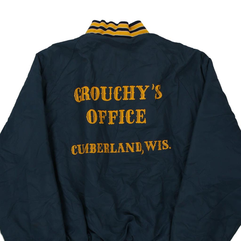 Vintage Made in USA Grouchy's Office navy Dunbrooke varsity jacket, fits medium.