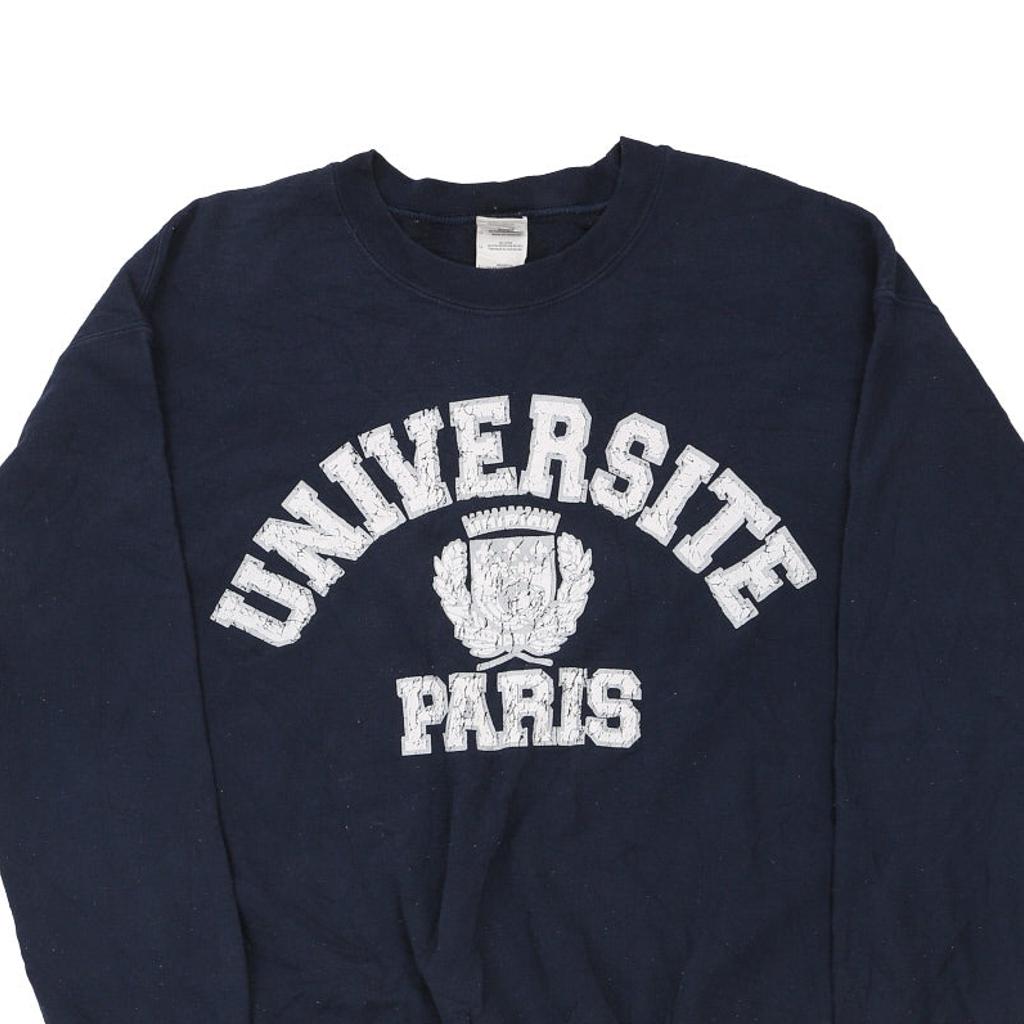 Paris Gildan College Sweatshirt - Large Navy Cotton Blend