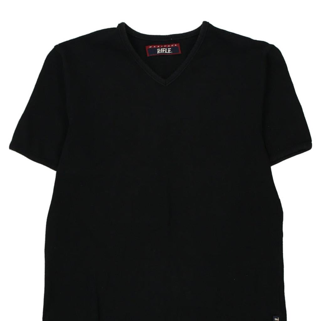 Rifle V-neck T-Shirt - Medium Black Cotton
