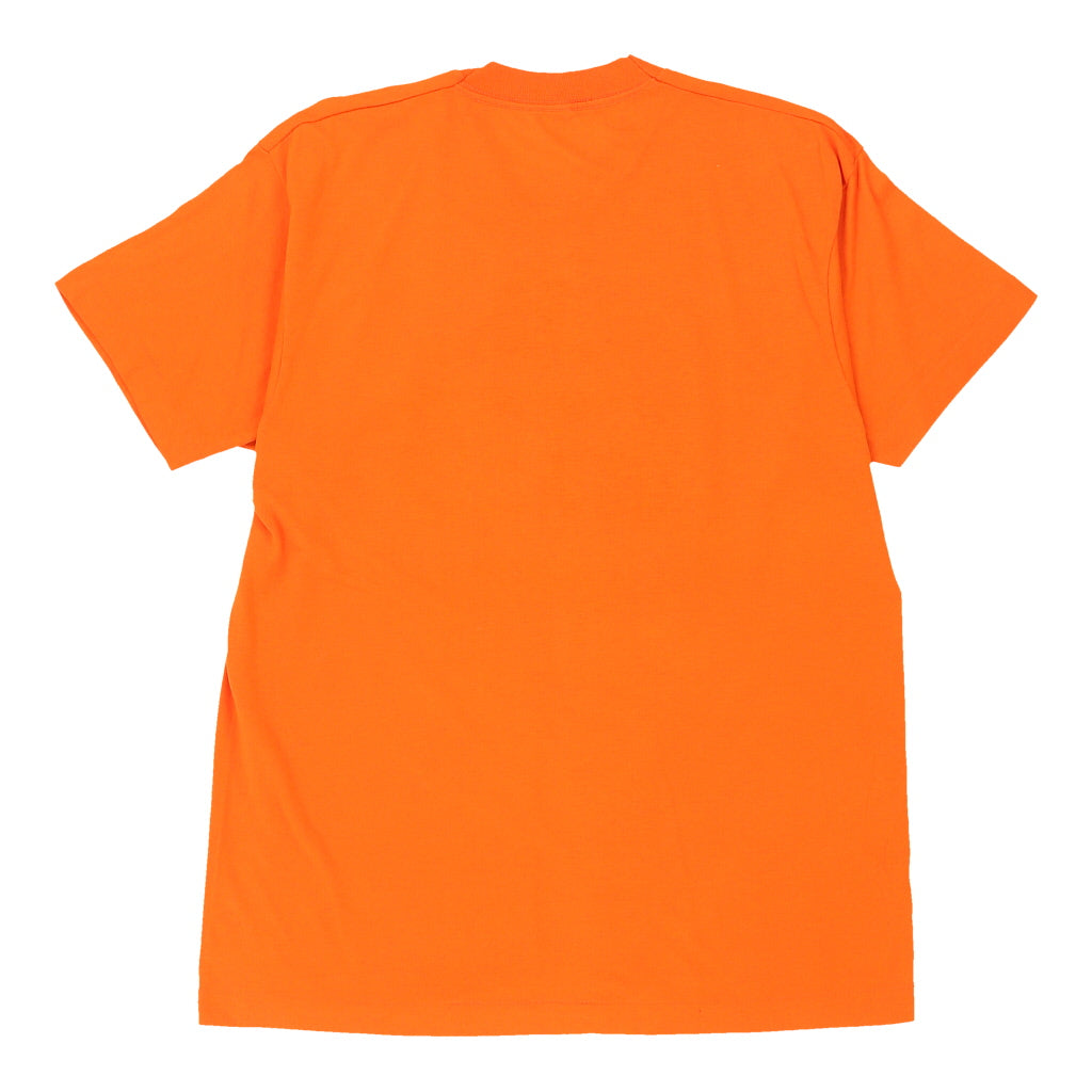 Single Stitch 1980s Fighting Illinois. Screen Stars College T-Shirt - Large Orange Cotton