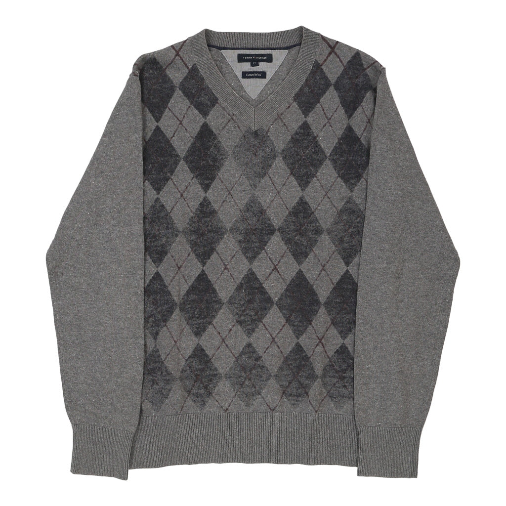 Tommy Hilfiger Argyle Jumper - Large Grey Cotton