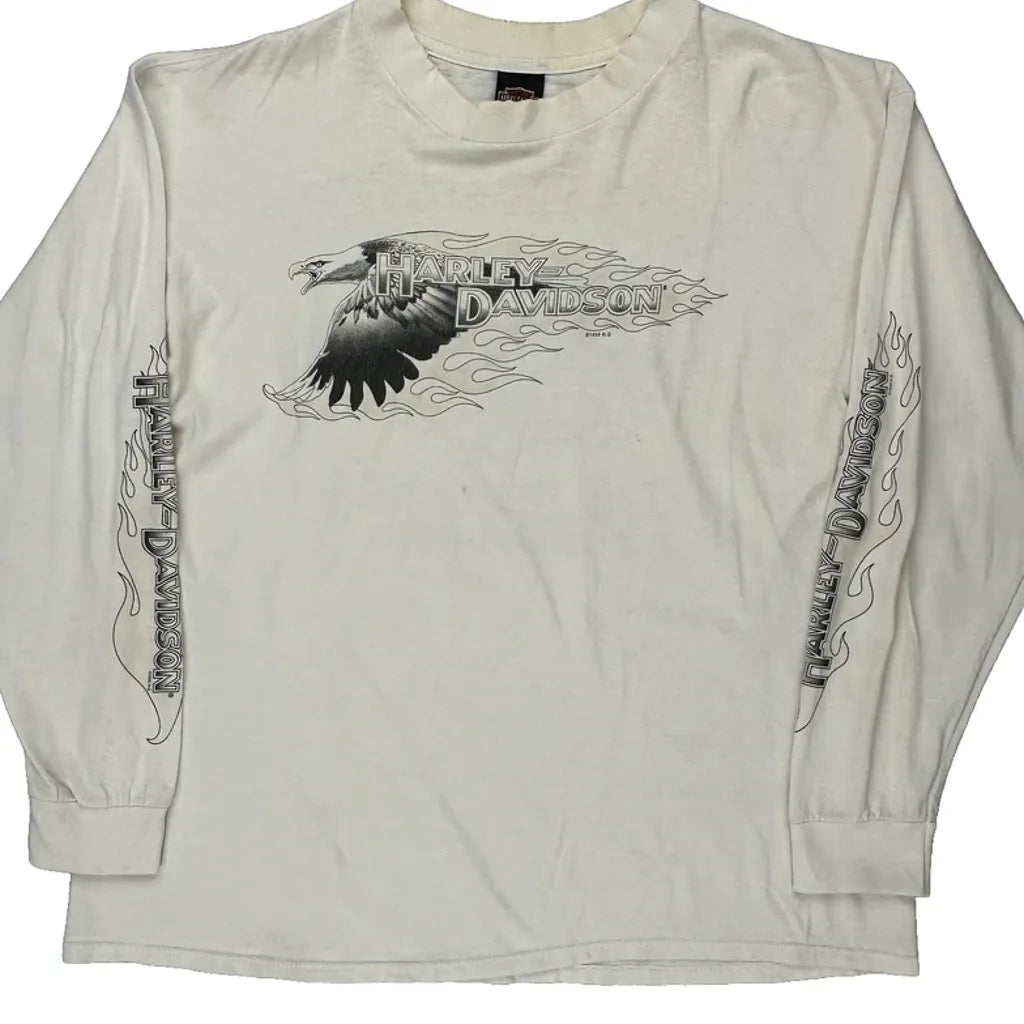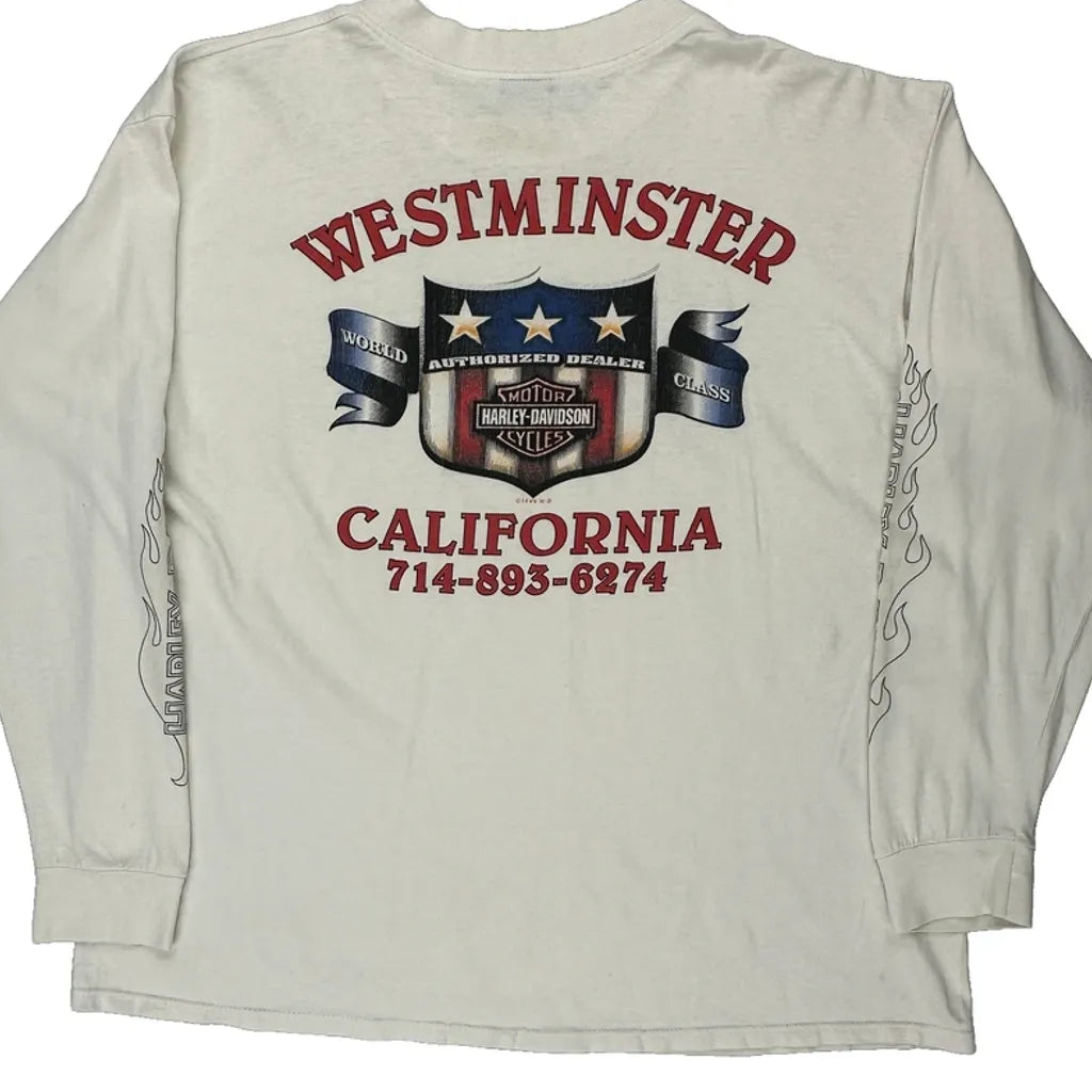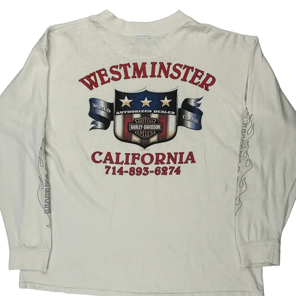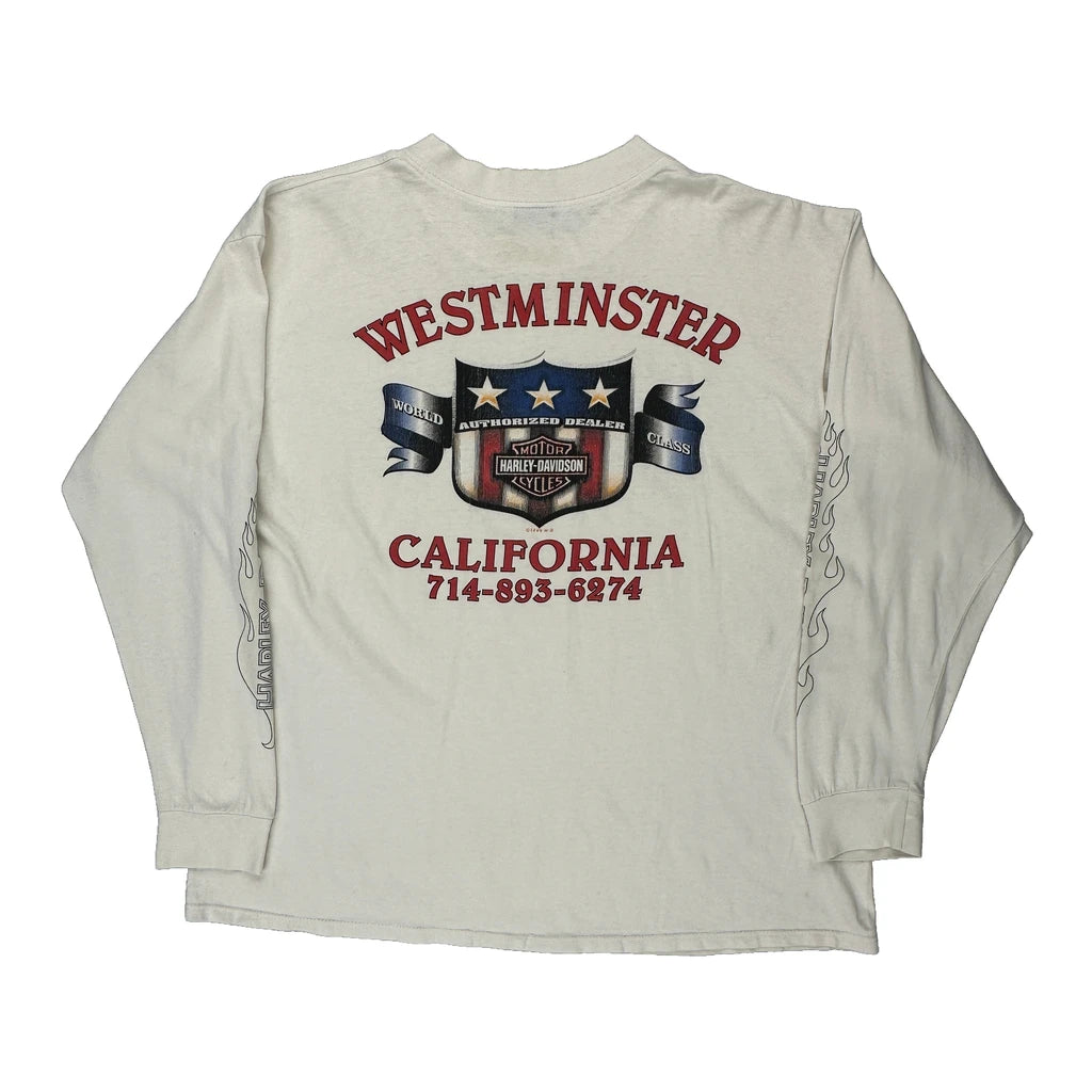 Westminster California Harley Davidson Graphic Long Sleeve T-Shirt - XL Cream Cotton