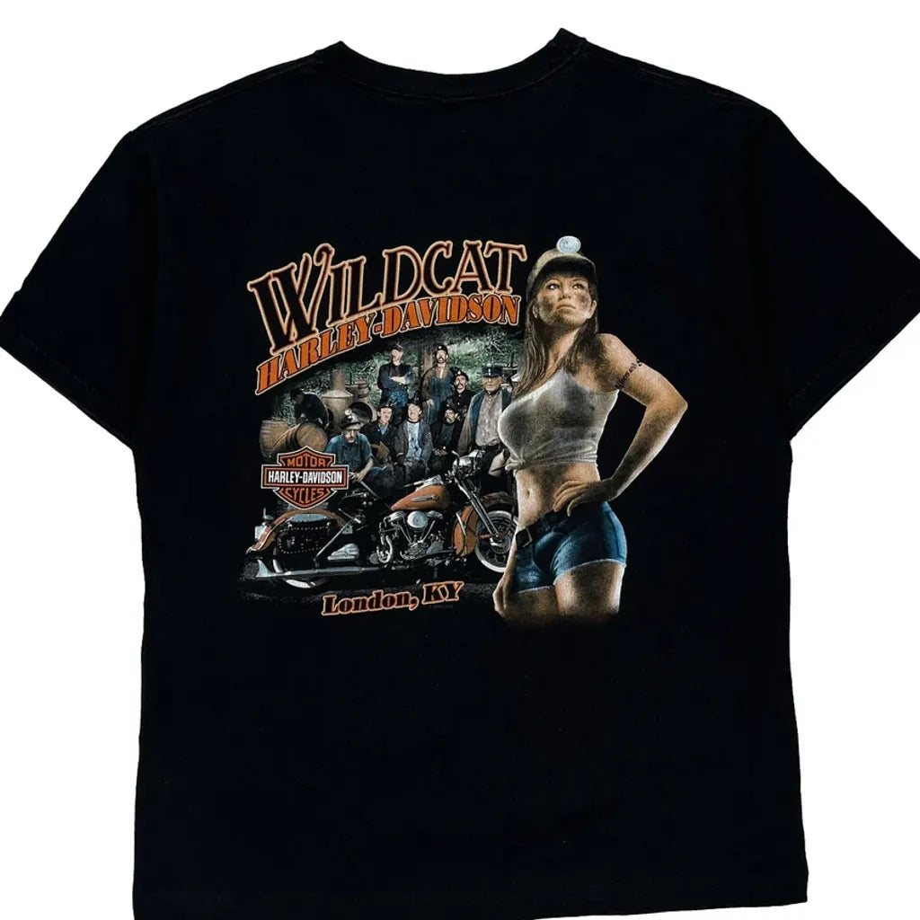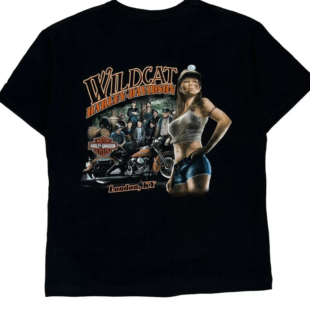 Wildcat Harley Davidson Graphic T-Shirt - Medium Black Cotton