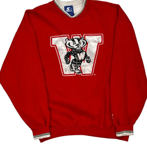 Wisconsin Badgers Starter College Sweatshirt - Large Red Polyester Blend
