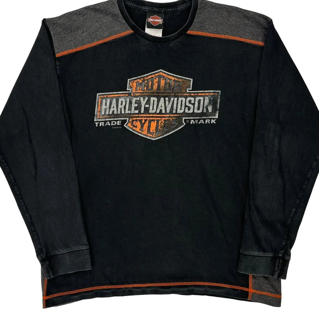 Wisconsin Harley Davidson Graphic Long Sleeve T-Shirt - Large Black Cotton