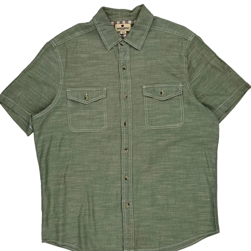 Woolrich Short Sleeve Shirt - Medium Green Cotton