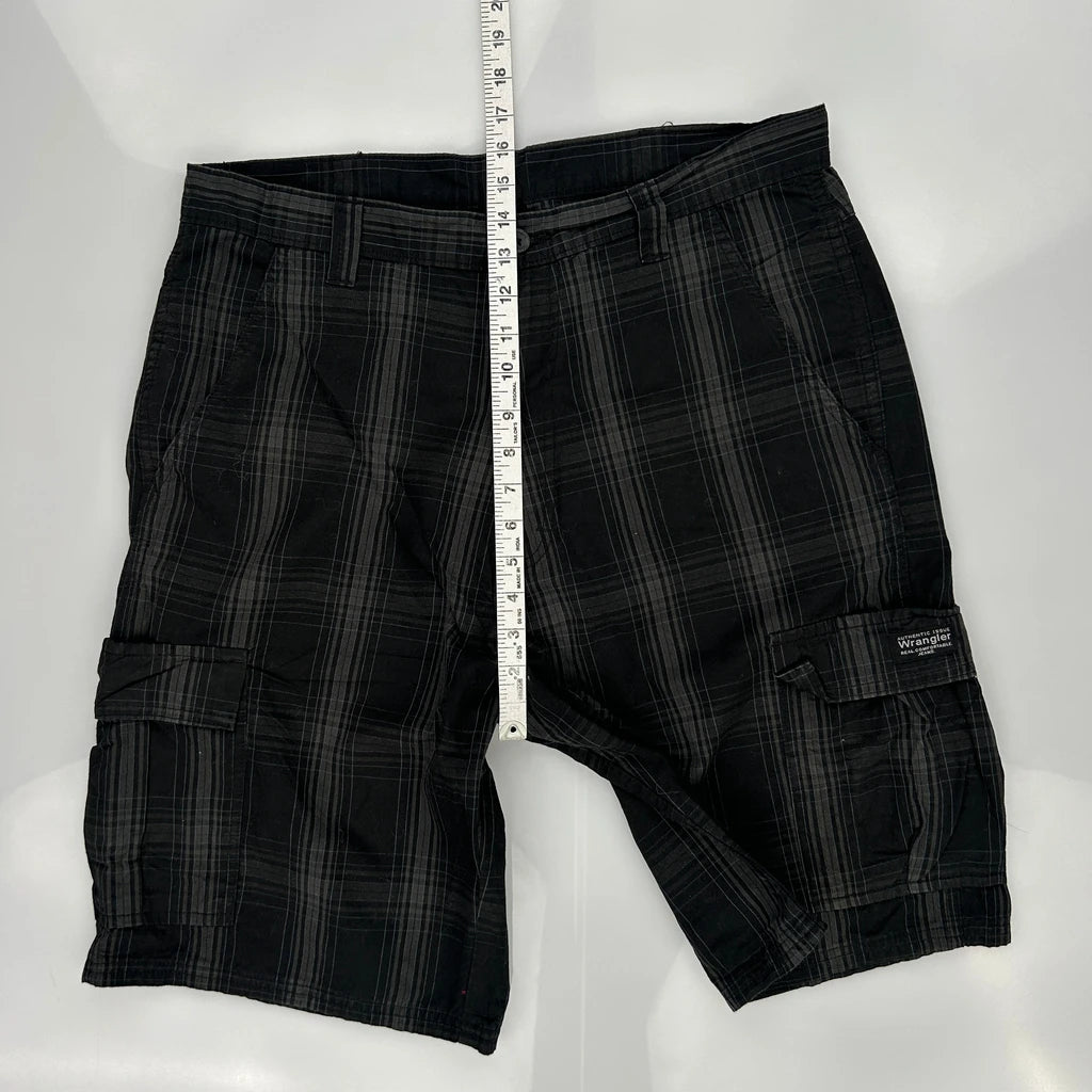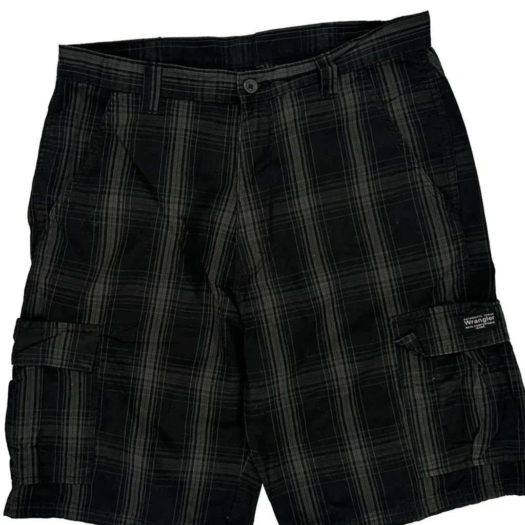 Wrangler Checked Cargo Shorts - 35W 10L Black Cotton