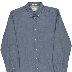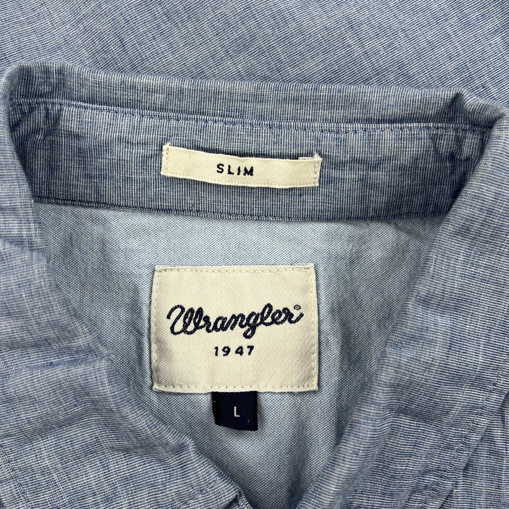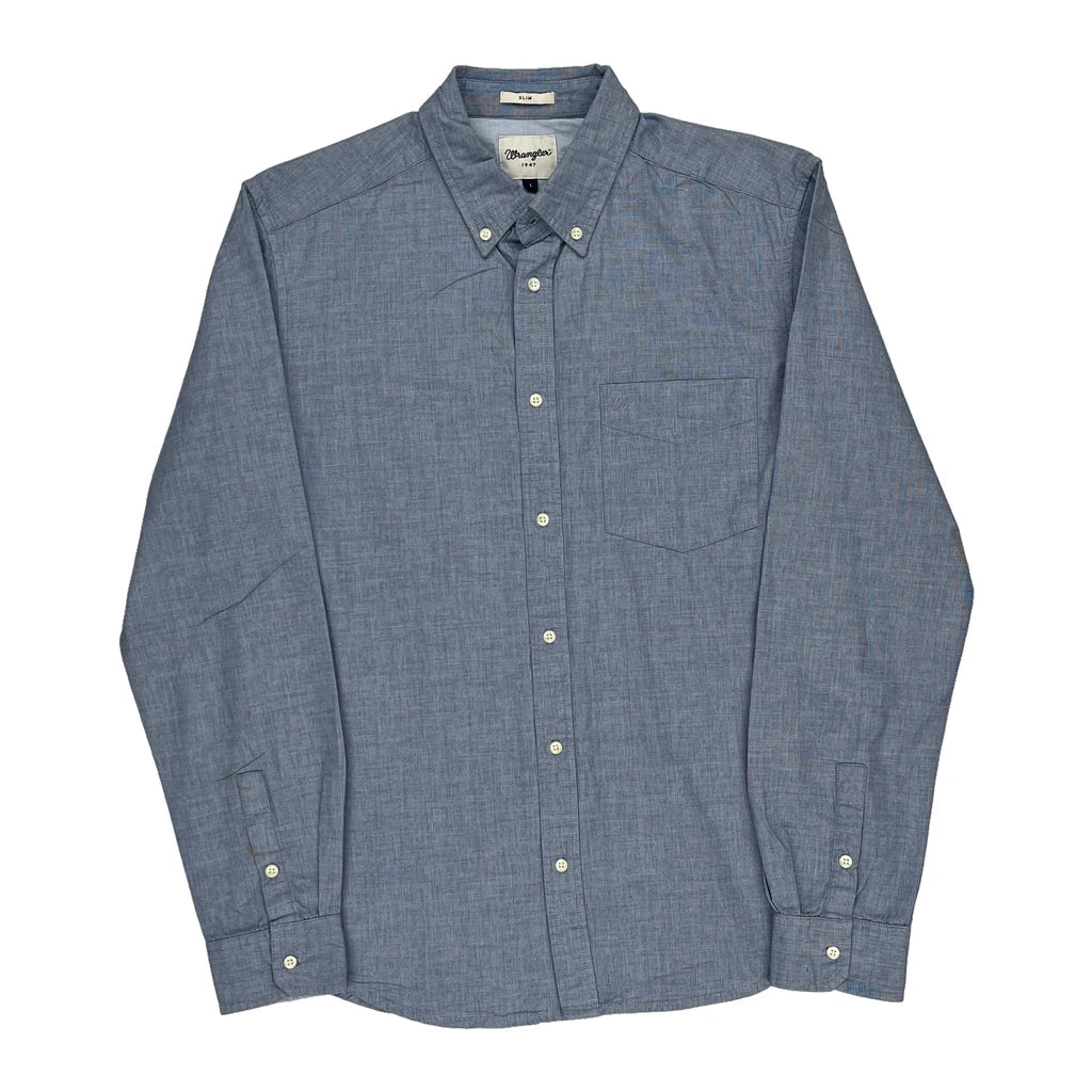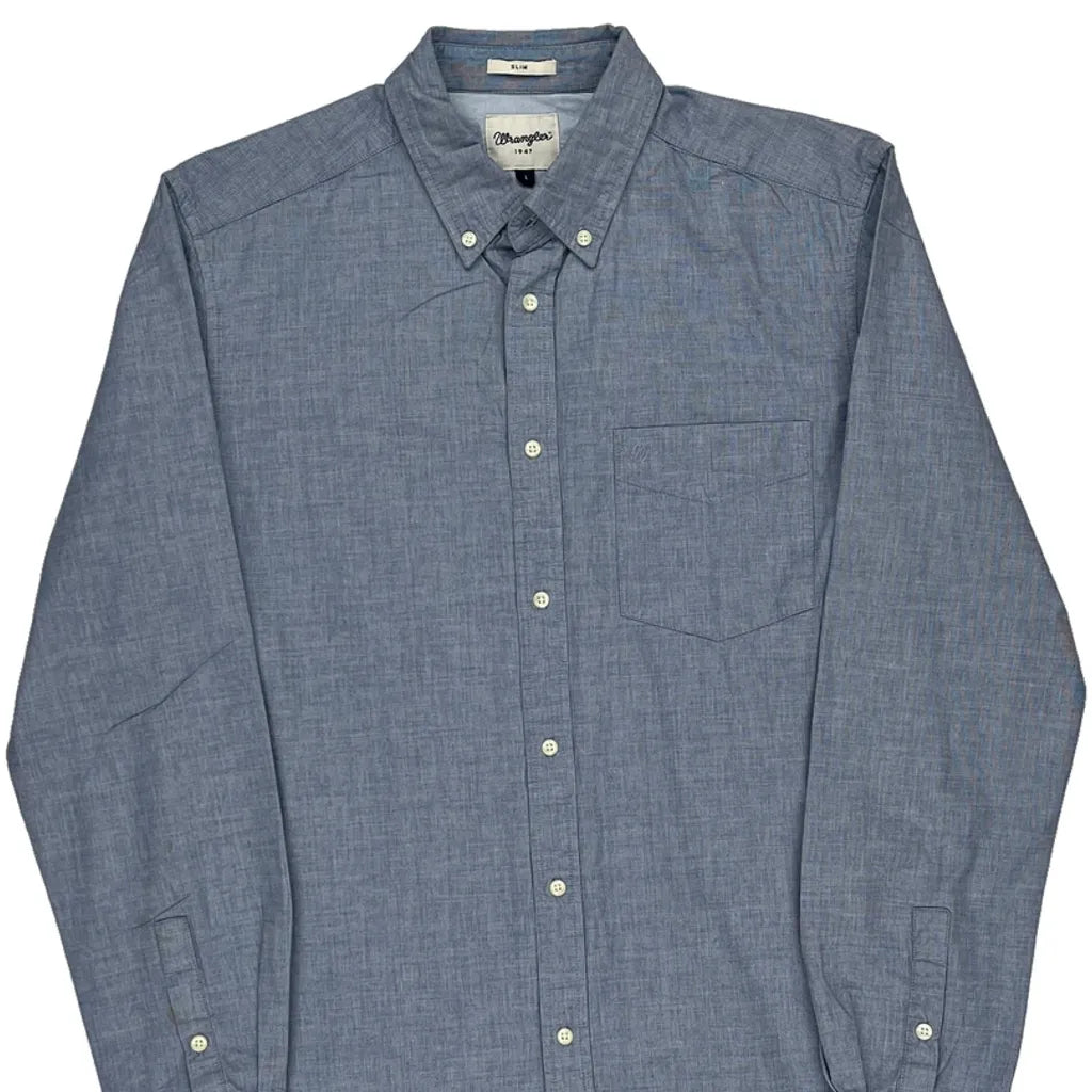 Wrangler Slim Shirt - Large Blue Cotton