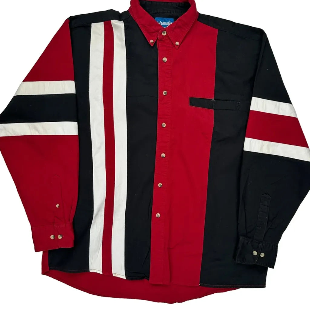 Wrangler Western Shirt With Bold Stripes And Color Block Design.